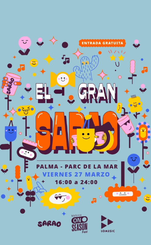 El Gran Sarao se celebrará el viernes 27 de marzo en el Parc de la Mar de Palma, con una gran fiesta al aire libre y entrada gratuita. La cita se desarrollará entre la tarde y la noche y convertirá este espacio emblemático en un punto de encuentro para disfrutar de música y buen ambiente.