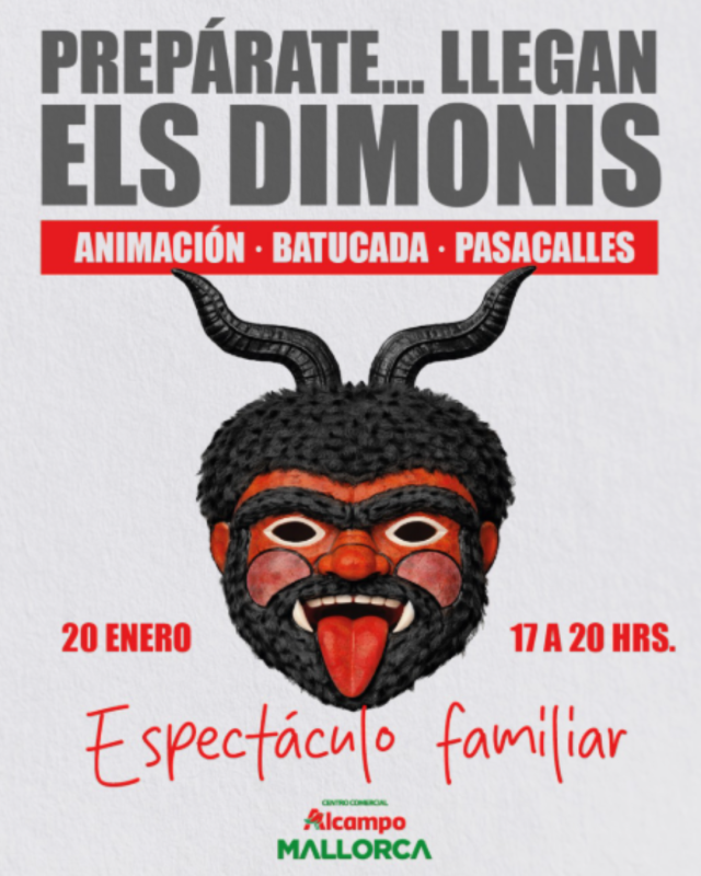 El martes 20 de enero, la tradición y el ritmo llegarán a Alcampo Mallorca con la visita de Els Dimonis, en un espectáculo familiar pensado para todos los públicos.