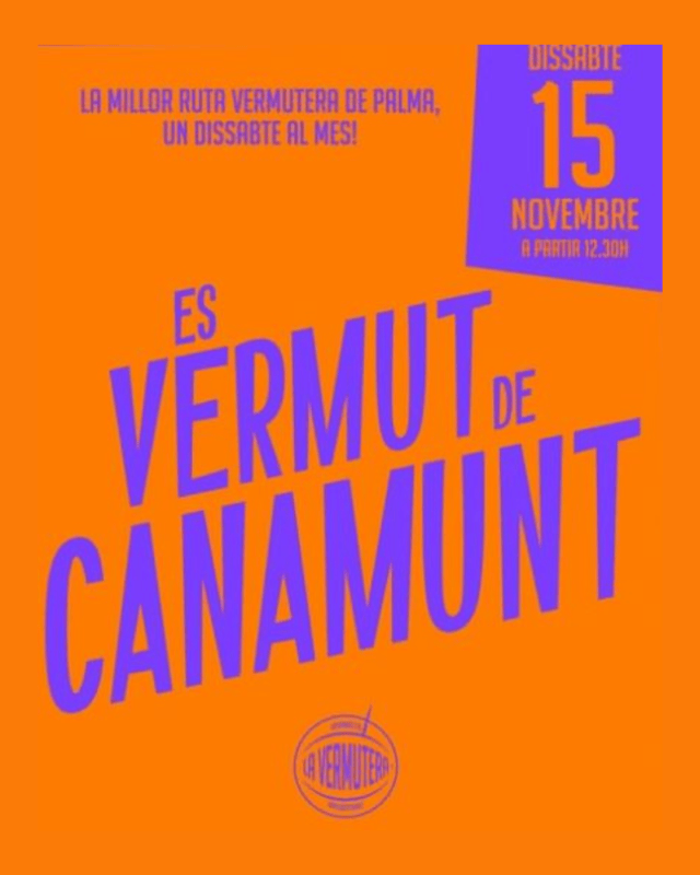 El 15 de noviembre, desde las 12:30 h, regresa Es Vermut de Canamunt, la ruta vermutera más conocida del centro de Palma. Los locales participantes ofrecerán tapas, vermuts y música para disfrutar del sábado con el mejor ambiente.