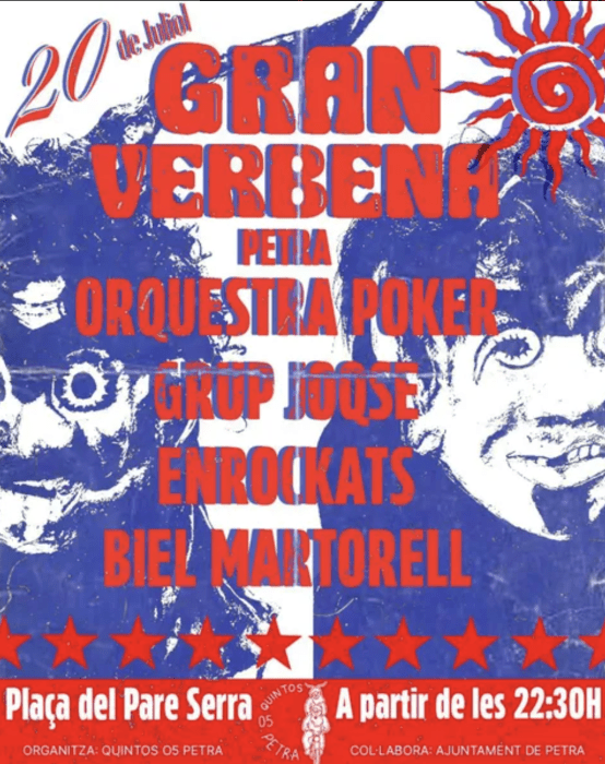 El próximo 20 de julio, a partir de las 22:30 h, la Plaza del Pare Serra se llenará de música, luz y fiesta con los Quintos de Petra 2005.