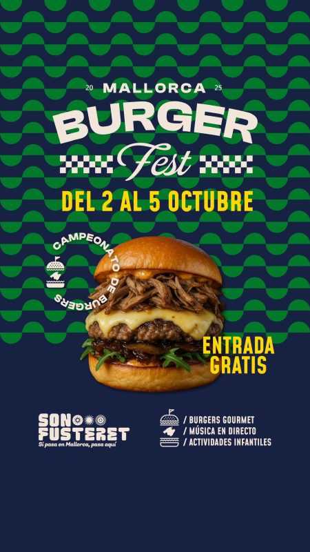 El Mallorca Burger Fest llega con cuatro días de puro sabor y diversión. Más de 20 food trucks y carpas competirán con sus mejores hamburguesas: clásicas, creativas e innovadoras. El 5 de octubre, un jurado profesional elegirá las tres mejores del festival.