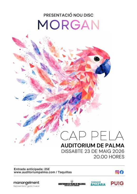 El concert de Cap Pela amb la presentació del disc Morgan tendrà lloc el dissabte 23 de maig de 2026 a les 20:00 hores a l’Auditorium de Palma, en una cita molt esperada per als amants de la música vocal.