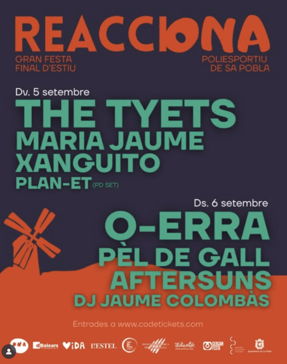 Els dies 5 i 6 de setembre, Sa Pobla serà la seu del festival Reacciona. Amb artistes com O-erra, Maria Jaume, Pèl de gall, entre d’altres, es tracta d’una trobada que té per objectiu l’enfortiment dels mitjans de comunicació en català a Mallorca.
